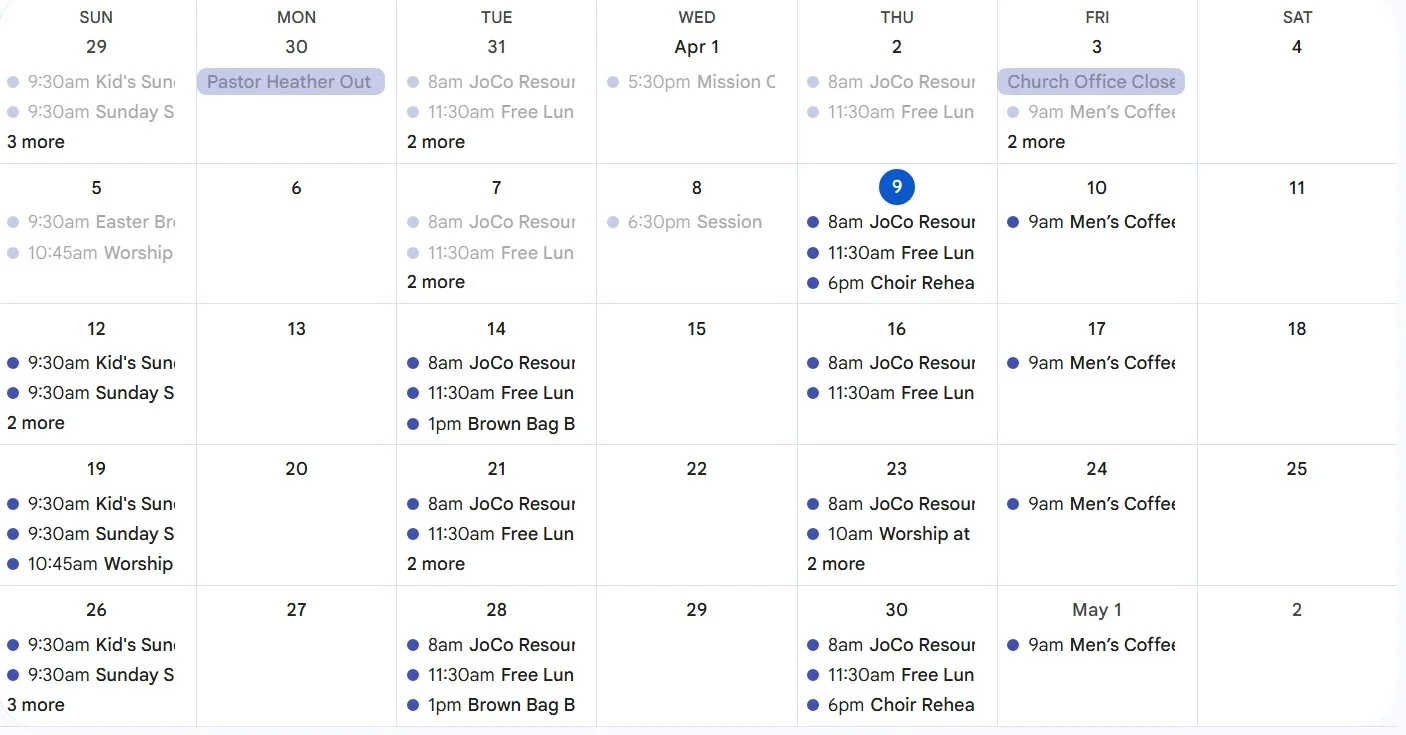 April 2026 Calendar Or connect directly to Google Calendar here . . . GOOGLE CALENDAR GOOGLE CALENDAR
